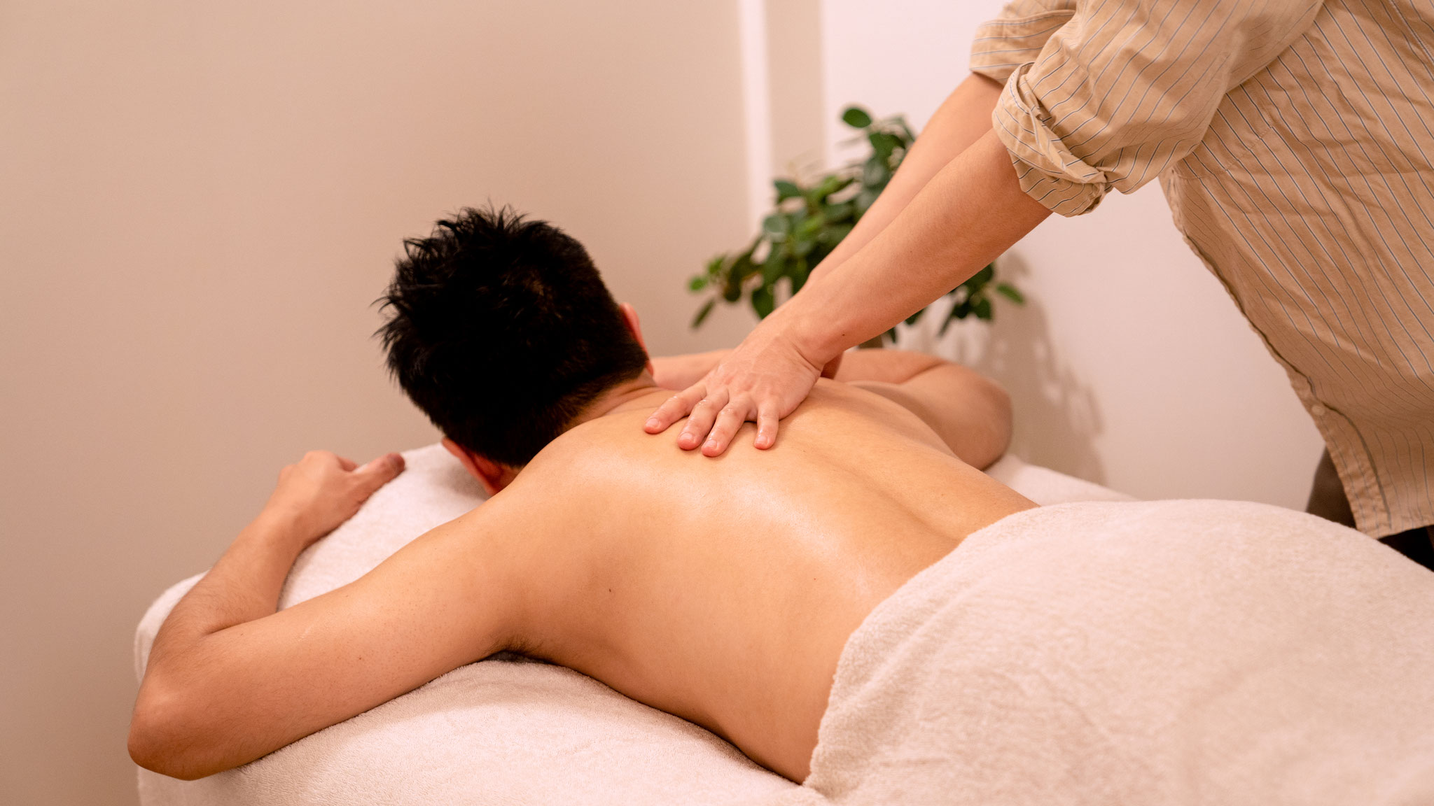 極端な揉みほぐしではなく、ゆったりとしたリズムとロングストロークで深い圧を加えていき、身体の緊張を緩めていきます。