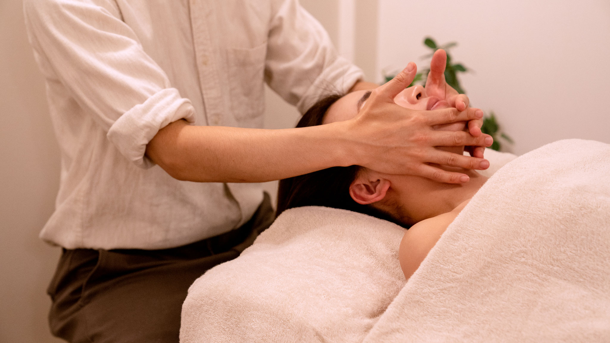 顔から頭部にあるツボを刺激し、血行促進と緊張緩和を促します。