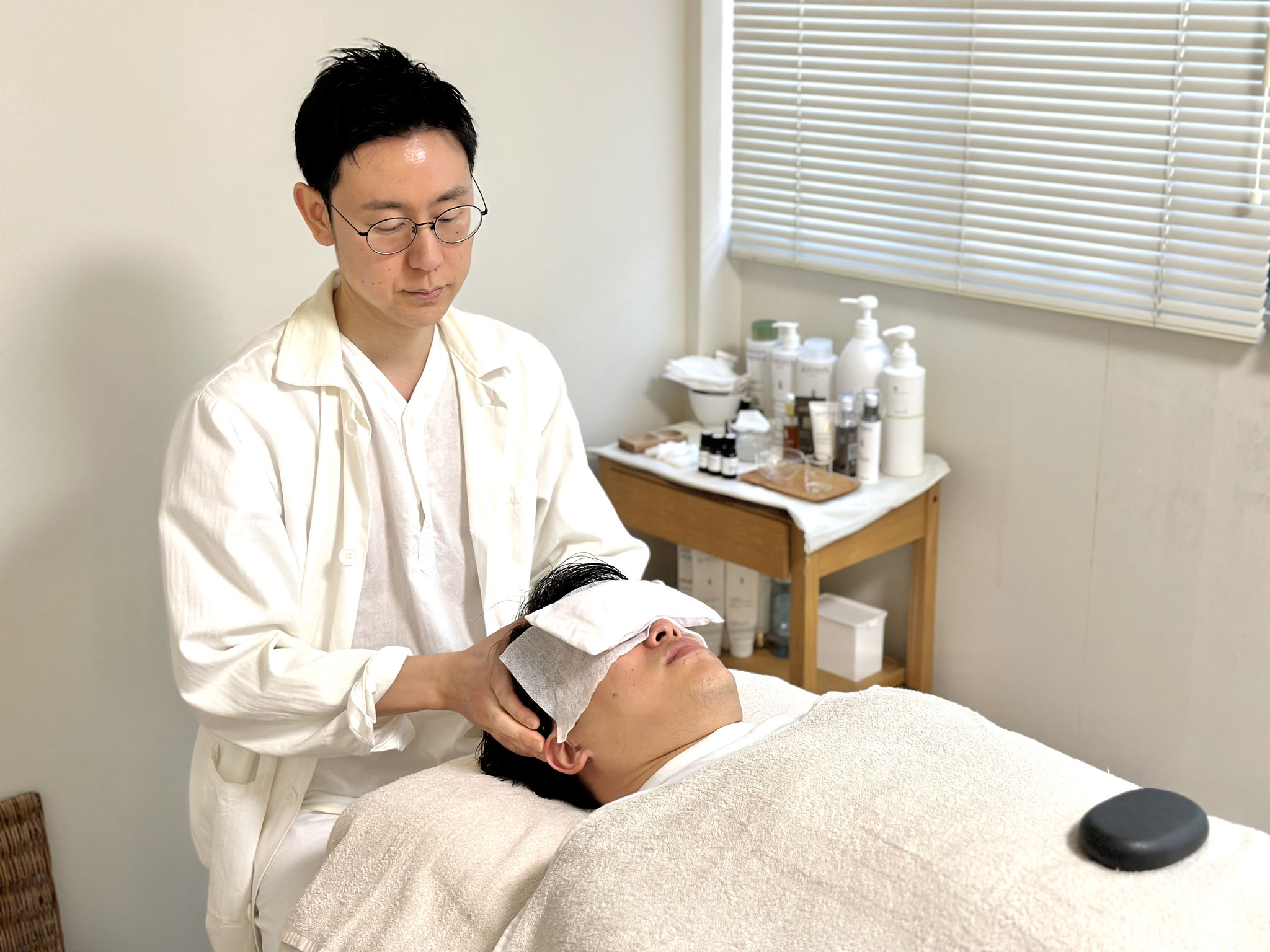 施術には、国産ベチバー精油とその他の和精油をブレンドした、PANオリジナルのマッサージオイルを使用。深みのある土の香りと温かみを感じる香りが、心身をゆっくりほぐします。